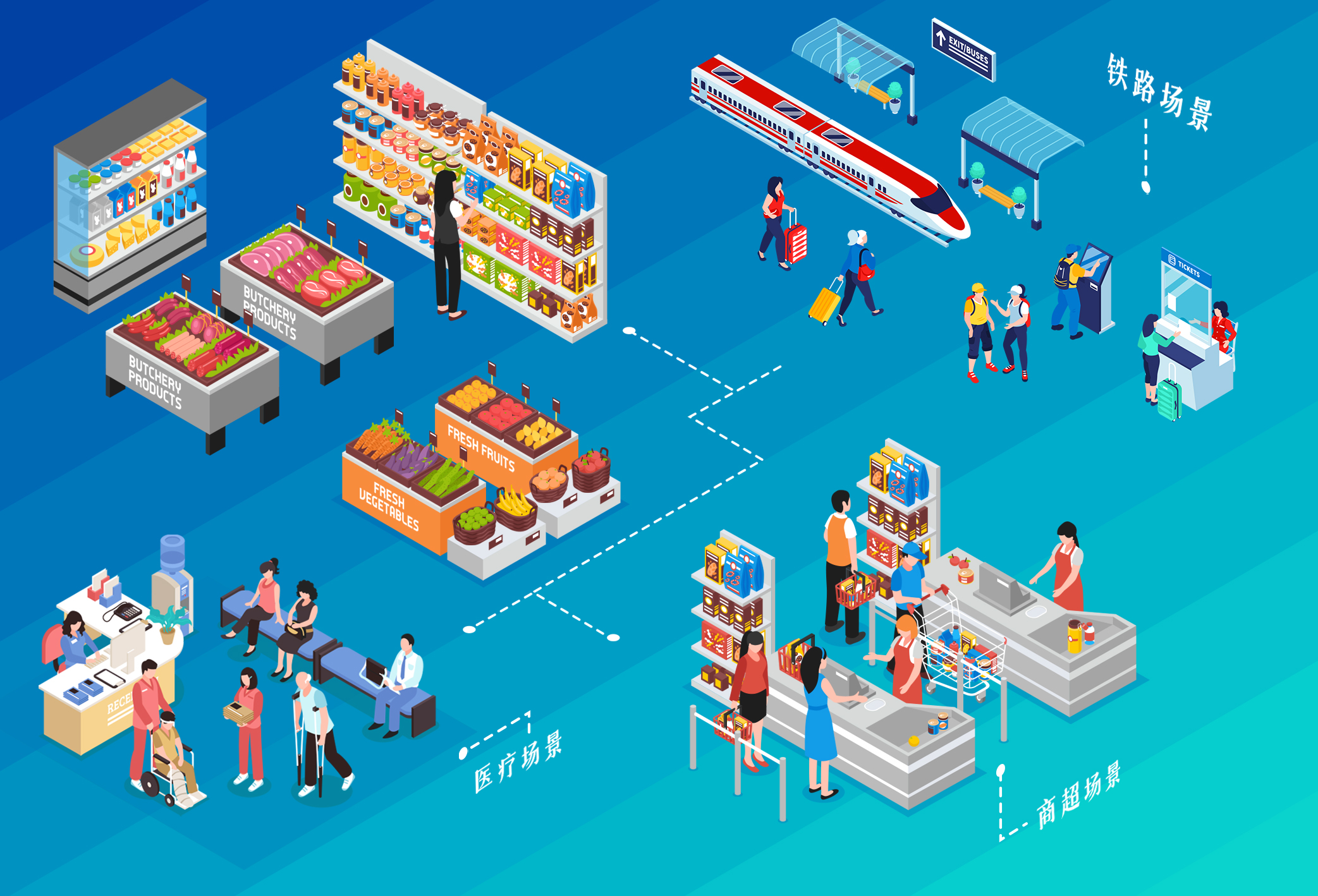 对于营业规模小、数量众多的小微商户,可提供码牌音箱、计算器POS、智能POS、智能收银秤等数币支付受理设备,为超过1.1亿的海量小微市场主体提供了实用、实惠等多款定制化设备软硬件产品。对于规模较大、内部系统及管理架构相对复杂的商户,软件上可提供定制化的数币云MIS、前端MIS对接,硬件上可提供双屏收银机、自助收银机等,为商场超市、税务医疗、铁路烟草、公共事业缴费等场景客户提供全方位数字人民币支付解决方案。